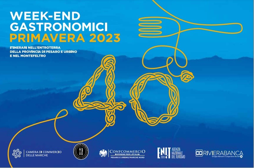 PESARO 31 MAGGIO 2023 – Penultimo finesettimana con i Week-end Gastronomici, giunti alla 40esima edizione, ideati e organizzati da Confcommercio Marche Nord. In programma fino all’11 giugno, vedono protagonisti ben 46 ristoranti, distribuiti in 30 località. ‘Itinerari nell’entroterra della provincia di Pesaro Urbino e nel Montefeltro’ il sottotitolo della manifestazione, tra le più longeve e di successo della intera regione Marche, promossa con il prestigioso patrocinio dell’Enit Agenzia Nazionale del Turismo, e il sostegno di Camera di Commercio delle Marche, RivieraBanca. Gruppo Hera e Prosciutto di Carpegna.