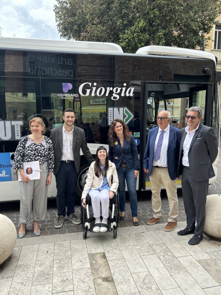 Si chiama “Giorgia” perché dedicato alla “coach” di CulturAccessibile, il mezzo Adriabus presentato oggi agli Stati generali dell’accessibilità promossi da Marco Perugini, presidente del Consiglio comunale con delega al PEBA e da Maruska Palazzi, Garante per i diritti delle persone con disabilità. «Felici di inaugurare questo mezzo di #WePesaroAccessibile – ha detto Marco Perugini, presidente del Consiglio comunale –, durante un appuntamento nato per scambiare buone prassi e promuovere azioni virtuose per migliorare l’accessibilità di Pesaro. L’autobus che presentiamo, è la testimonianza dell’utilità dell’iniziativa e di come si possa crescere, insieme». «Come assessore con delega alla Viabilità sono estremamente felice del lavoro fatto, in particolare da Palazzi e Perugini – ha detto Enzo Belloni, assessore all’Operatività –ma lo sono ancor più da genitore di un ragazzo con disabilità: non è facile riuscire a cambiare le cose nonostante il ruolo di amministratori; il risultato di oggi dimostra che, un gradino alla volta, si può arrivare in cima». Perché «per costruire una cultura dell’accessibilità condivisa servono nuovi pensieri», ha aggiunto Palazzi.