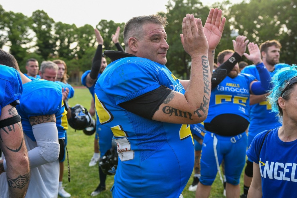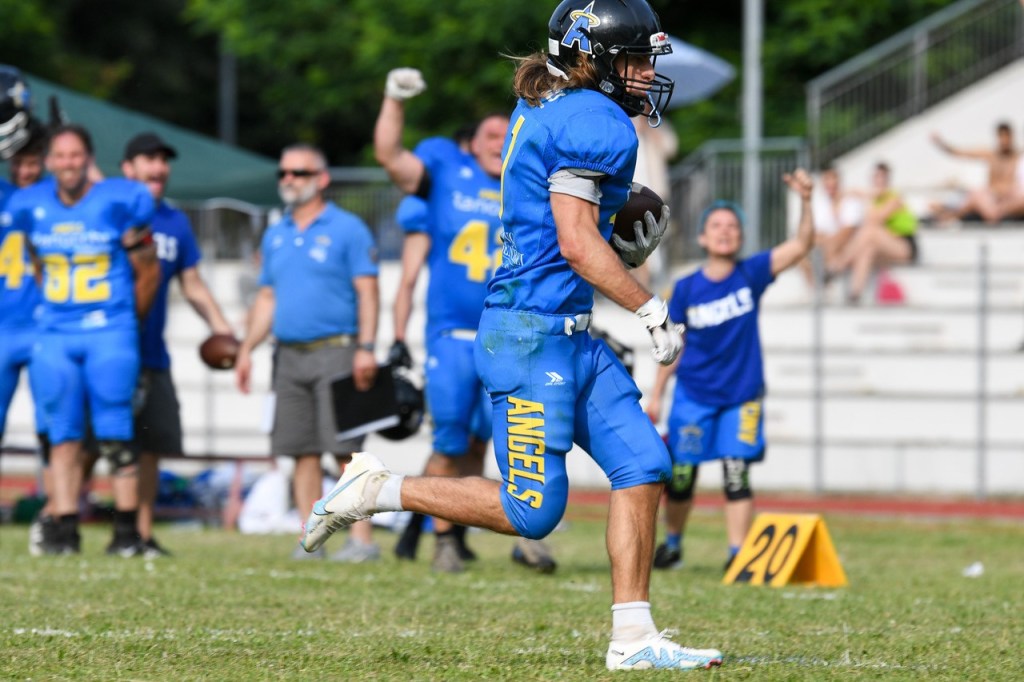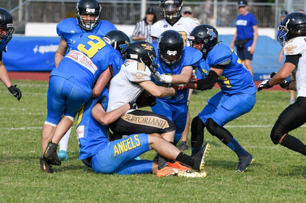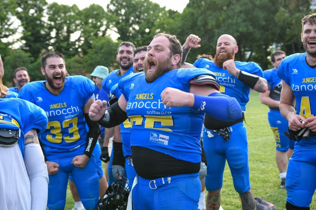Una giornata da ricordare per gli Angels che hanno travolto i Pretoriani Roma nella semifinale playoff (44-14 il risultato) e regalato così una soddisfazione immensa ai due giocatori che si congedavano dal pubblico di casa per raggiunti limiti di età, Filippo Piermaria e Luciano Civinelli.