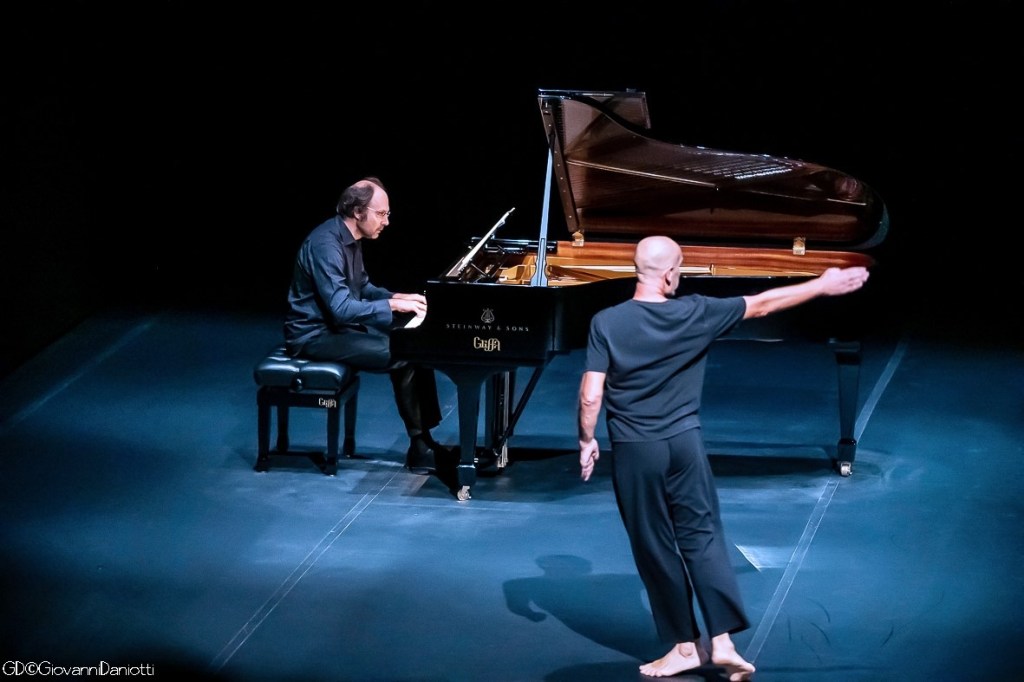 Solo Goldberg Variations, danzato dallo stesso Sieni accompagnato al pianoforte da Andrea Rebaudengo, rappresenta il manifesto dell’arte coreografica dell’artista tra i più apprezzati della scena italiana, emblema delle sue ricerche sul corpo e sui linguaggi della danza e dell’arte, sempre protese a oltrepassare gli approdi formali e le codificazioni. In questo lavoro la musica di Bach definisce una metrica e un’architettura immateriale in cui il danzatore si iscrive attuando un continuo ripensamento del corpo e accennando a un articolato percorso di figure prostrate, tratte dall’arte italiana dal ‘300 al ‘600. Il corpo assimila le immagini del passato e diviene la soglia attraverso la quale riflettere sul futuro. Un viaggio del gesto da una figura all’altra, negli intrecci e i chiasmi, attraverso risonanze e svelamenti dell’opera d’arte.