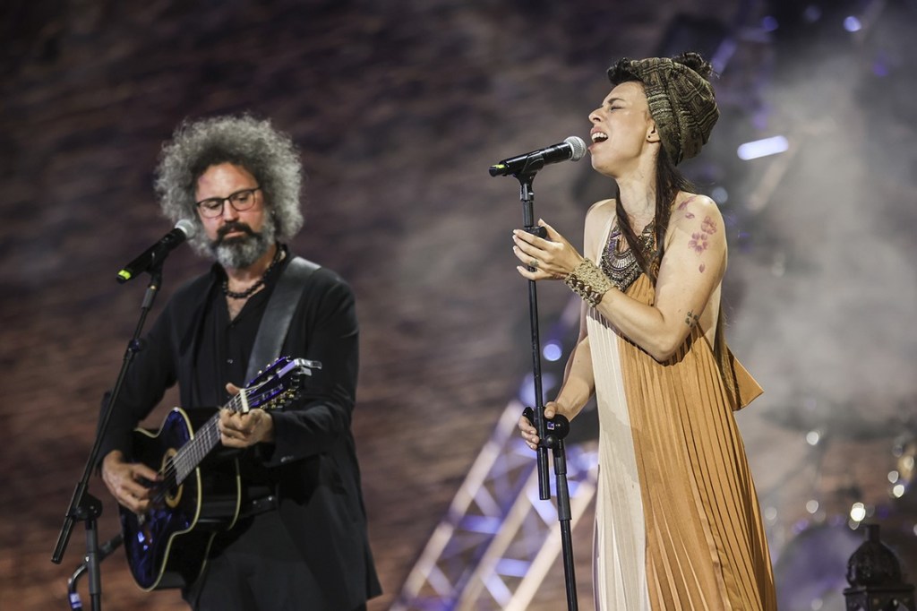 La serata finale del Festival, condotta brillantemente da Flavio Insinna e Carolina Di Domenico si è aperta con l’esibizione a sorpresa di Simone Cristicchi e Amara con un toccante omaggio a Franco Battiato. Ispirati dal repertorio mistico del grande Maestro, i due artisti hanno interpretato i suoi messaggi spirituali con le canzoni “L’ombra della luce” e la bellissima “La cura”.
