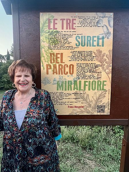 “Tel parco Miralfiore c’è tre cerque, le jè tre surèli, adovet veda quant le jè beli!”. Sono i primi versi della poesia che Franca Mercantini ha dedicato ad uno dei luoghi più belli della città. Strofe che da ieri sono fruibili e accessibili a tutti, grazie all’installazione multisensoriale pensata dal Comune di Pesaro, in sinergia con la scuola Mengaroni e la famiglia Mercantini.