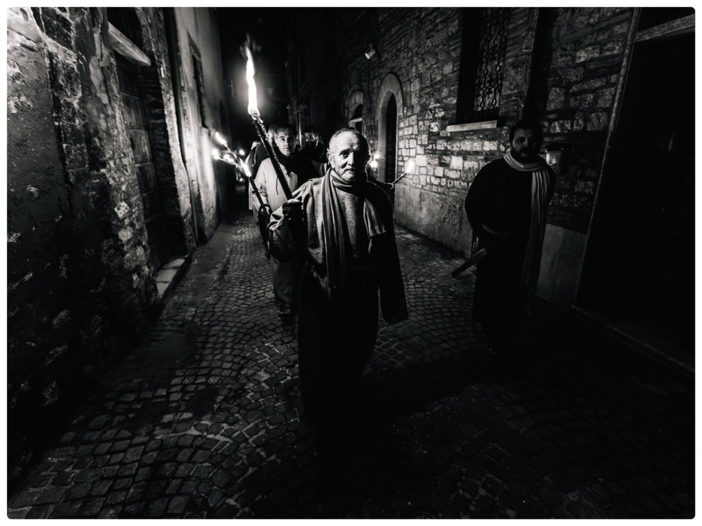 PESARO – «Una fila al medesimo» è il titolo della mostra fotografica di Filippo Biagianti dedicata alla Turba e in programma a Cantiano da sabato 5 agosto, nella sala della cultura del chiostro di Sant’Agostino (via IV Novembre). L’allestimento, curato dall’associazione culturale ‘Turba Odv’ con la compartecipazione del Comune e il patrocinio della Provincia, sarà visitabile fino a domenica 27 agosto, con aperture serali (21.30-23.30) che si estenderanno anche ai pomeriggi dei giorni prefestivi e festivi con la disponibilità della Pro Loco. L’ingresso è libero. Dice l’autore: «E’ un percorso di immagini per fermare, istante dopo istante, l’incedere lento di una processione di popolo. Passi a volte incerti e a volte sicuri, illuminati dalla luce ballerina di cento fiaccole. Il sacro e il profano si incontrano lungo un corteo di gente silenziosa. Un silenzio che racconta con grande dignità e potenza il senso vero di appartenenza ad una comunità che si fa paese». Spiegano gli organizzatori: «La mostra fotografica celebra la prima edizione a regime della riproposizione della Turba stessa, così com’era nelle sue forme arcaiche di processione con personaggi in costume. L’evento, voluto con forza dopo l’alluvione dello scorso anno, ha visto anche la partecipazione delle confraternite dei territori vicini (Cagli, Gubbio, Pergola; ndr) che condividono l’esperienza delle celebrazioni popolari del venerdì santo. Il titolo riporta l’intercalare con cui si elencavano i personaggi della processione di figure bibliche e allegoriche che nel XVII secolo animavano le vie di Cantiano il giorno del venerdì santo. La Confraternita del Buon Gesù nella terra di Cantiano mantenne viva nei secoli la tradizione della processione. Meno di un secolo fa, l’originaria processione itinerante fu trasformata in forma recitata con la scrittura di un copione e la creazione di un’appropriata scenografia, dando luogo alla “moderna” rappresentazione del narrato evangelico che oggi chiamiamo Turba». Domenica 13 agosto, alle ore 21, è in programma nel chiostro un incontro di presentazione dell’allestimento con la partecipazione dell’autore, dei rappresentanti istituzionali e dei soggetti cooperanti con l’associazione ‘Turba Odv’.