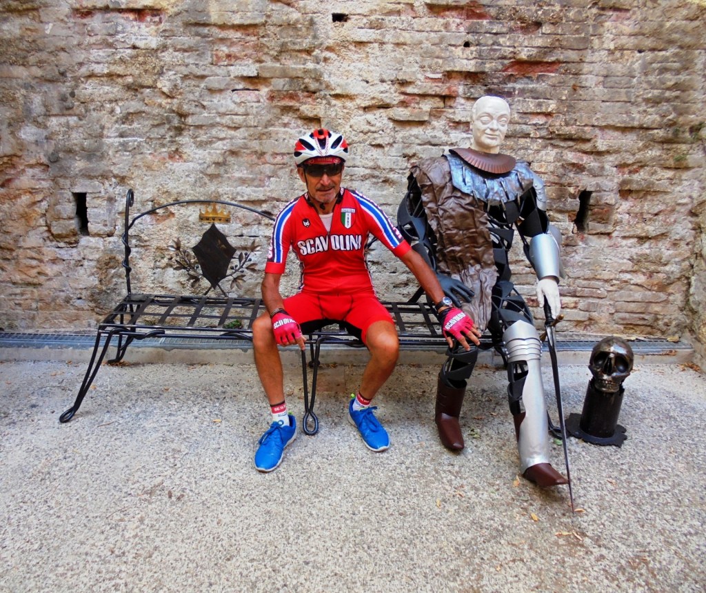 Federico da Montefeltro (Gubbio 1422 – Ferrara 1482), signore di Urbino (1444-1482), eccelso condottiero militare al servizio degli Sforza e dello Stato della Chiesa, fu nominato Duca di Urbino da Papa Sisto IV nel 1474. Durante la sua signoria accolse a corte letterati e artisti, facendo di Urbino uno dei centri più vivaci della cultura del Rinascimento italiano. Adesso il Duca Federico è stato messo in panchina, precisamente nel cortile dell’Oratorio di San Giuseppe in Via Barocci a Urbino. L’opera è stata realizzata dall’artista Gabriele Iacomucci su richiesta della Confraternita di San Giuseppe e del consigliere Giovanni Volponi.