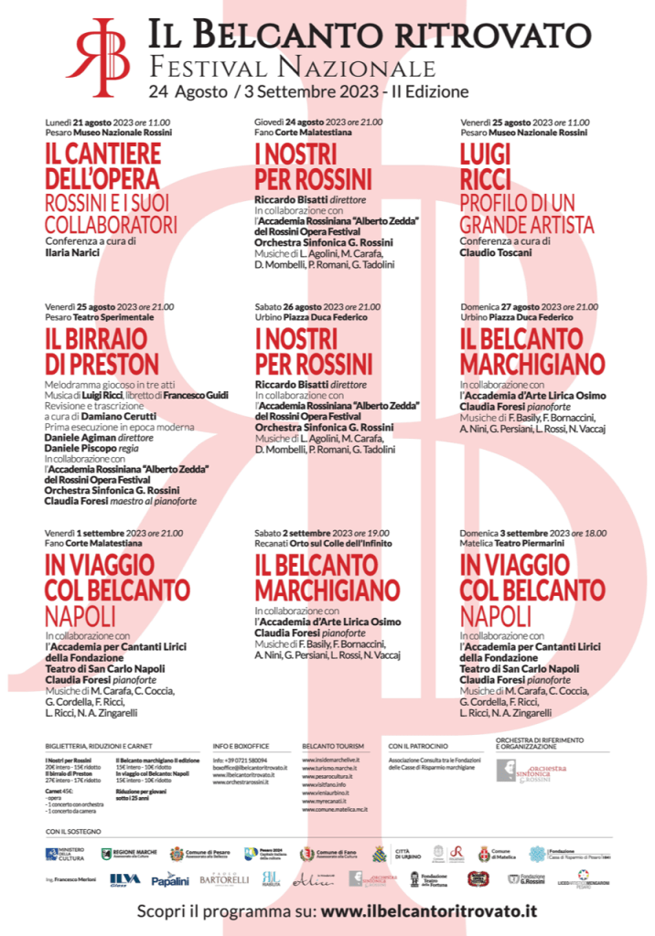 La riscoperta del patrimonio musicale italian del primo ‘800 è l’obiettivo di questa manifestazione che quest’anno si svolgerà tra Pesaro, Fano, Urbino, Recanati e Matelica.