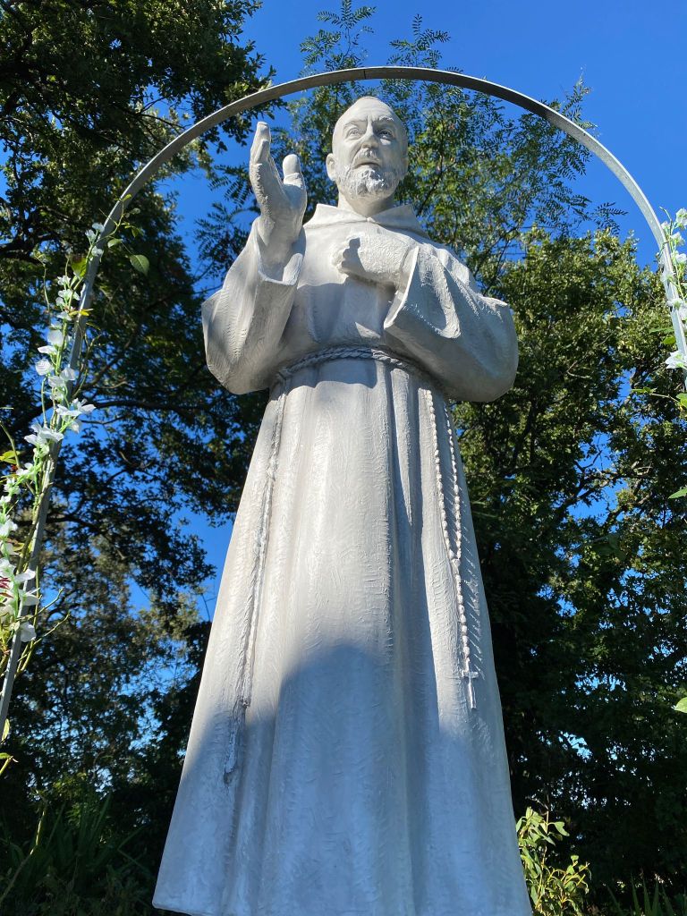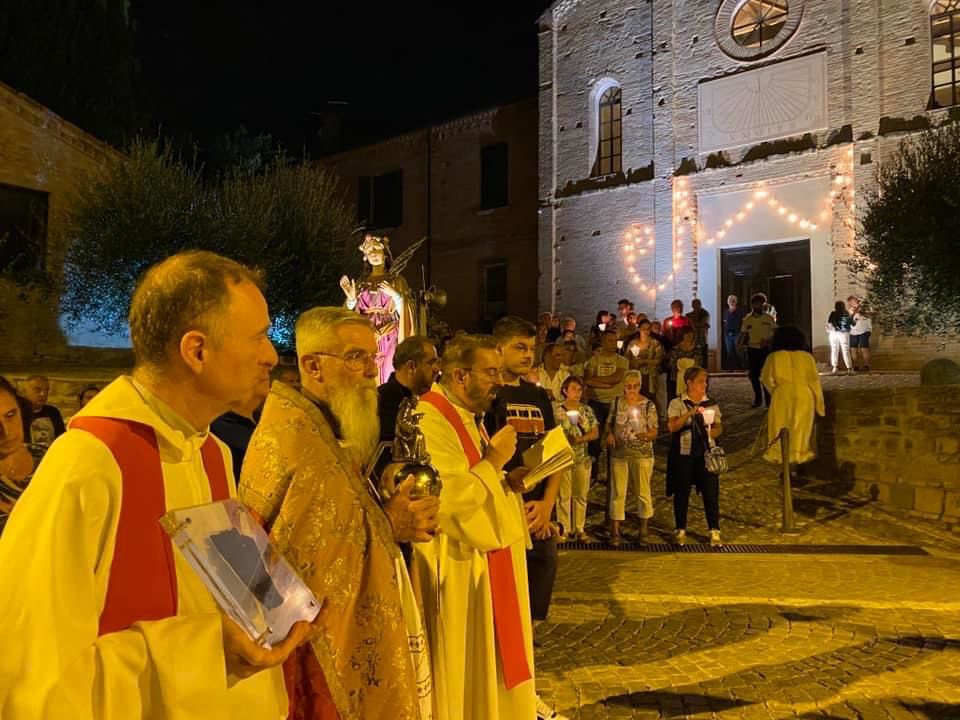 La festa si è poi conclusa con la processione della statua di S. Eurosia, patrona dei frutti del lavoro agricolo e delle reliquie per le vie di Candelara ed, infine, con la benedizione della statua di S. P. Pio, perché, come affermato dal cappuccino P. Carlo Maria Lagarde: “Questo luogo diventi esperienza di incontro con la santità nella preghiera silenziosa e di intercessione per grazie spirituali e fisiche. Il parroco, don Giampiero Cernuschi, ha introdotto dicendo come è nata la dedica a questo semplice frate mistico e taumaturgo S. P. Pio: “Proprio mentre ero immerso nel pensiero di rifiutare la proposta di una statua di S. Pio nelle Pieve di Candelara, rassettando le reti della raccolta delle olive per i poveri, in un campo, ho trovato impigliato nella rete un portachiavi nuovo proprio di San P. Pio….una rara coincidenza? O un segno evidente di una volontà superiore?…Fatto sta’ che San P. Pio ora è presente anche a Candelara, un segno di presenza di fede nei cuori e che parla di speranza per tanti malati.
