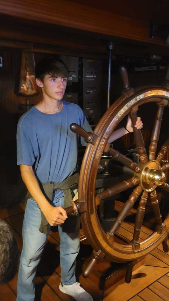 L’avventura a bordo del Palinuro – che misura 69 metri, ha 3 alberi e ben 15 vele – è partita il 7 agosto da Messina, destinazione Malta: “Siamo stati messi subito in riga, nel vero senso del termine, a bordo si avvertiva parecchio l’atmosfera militare. Quando siamo usciti dal porto il mare era molto mosso e nonostante la stazza del Palinuro sia notevole in diversi hanno avuto mal di mare, me compreso, quindi non è stato un grande inizio. Poi però ci siamo adattati in fretta alla nuova affascinante realtà che ci aspettava. Ci alternavamo in tre gruppi per svolgere i vari compiti: abbiamo imparato ad issare le vele che avevano bisogno di molte mani, stavamo di vedetta col binocolo per controllare gli incroci e avvisare col walkie-talkie, abbiamo timonato, tenuto il diario di bordo e poi, vabbè, ci è toccato anche di lavare le gamelle. La notte si dormiva in amache sospese nella parte centrale della nave, un po’ spartano ma divertente”.
