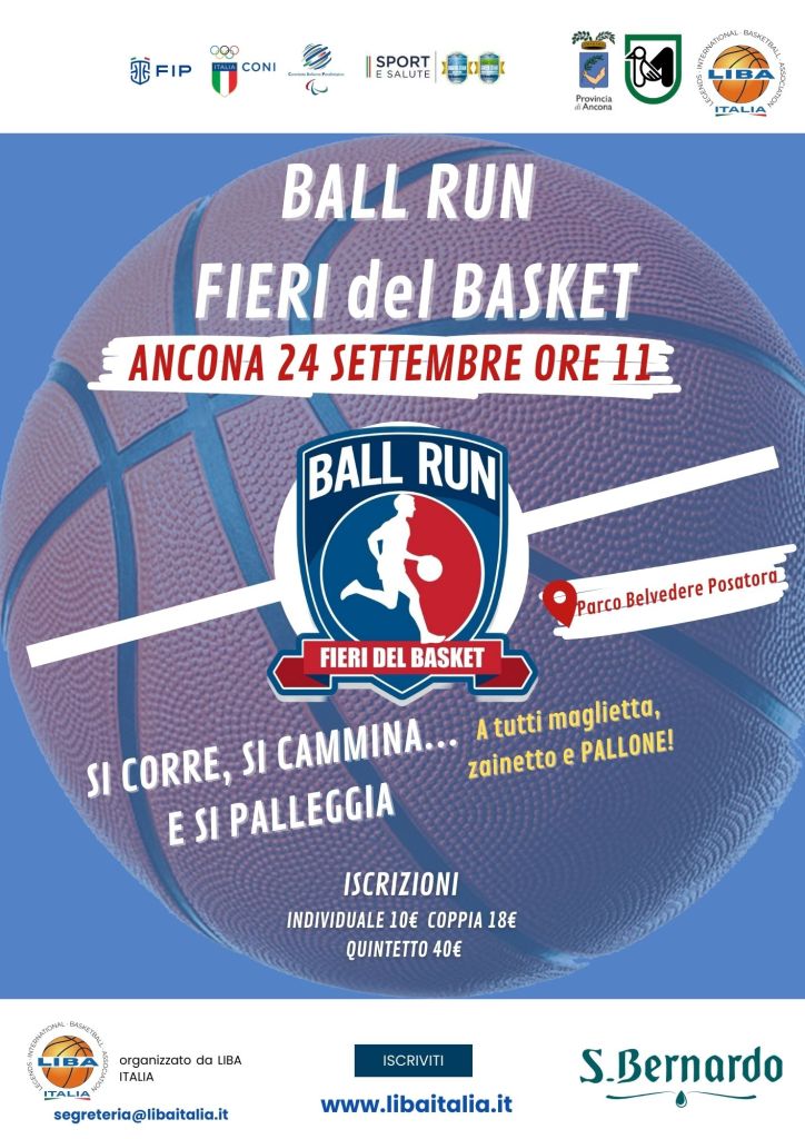 · Ancona: Il 24 settembre alle ore 11:00, l’evento “Ball Run Fieri del Basket” arriverà ad Ancona, partendo da Parco Belvedere Posatora. Anche qui, i partecipanti avranno la possibilità di godere di una mattinata all’insegna del basket.