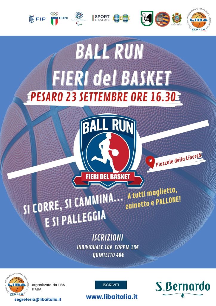 Pesaro 23 settembre 2023 /Ancona 24 settembre 2023 – Il basket è più che uno sport; è una passione che unisce comunità e genera entusiasmo. In questo spirito di celebrazione del basket, siamo lieti di annunciare l’evento “Ball Run Fieri del Basket”, una camminata/leggera corsa non competitiva della lunghezza di 3050 metri (esattamente 1000 volte l’altezza del canestro), che invita tutti gli amanti della pallacanestro a condividere la gioia di questa disciplina nelle città di Pesaro e Ancona.