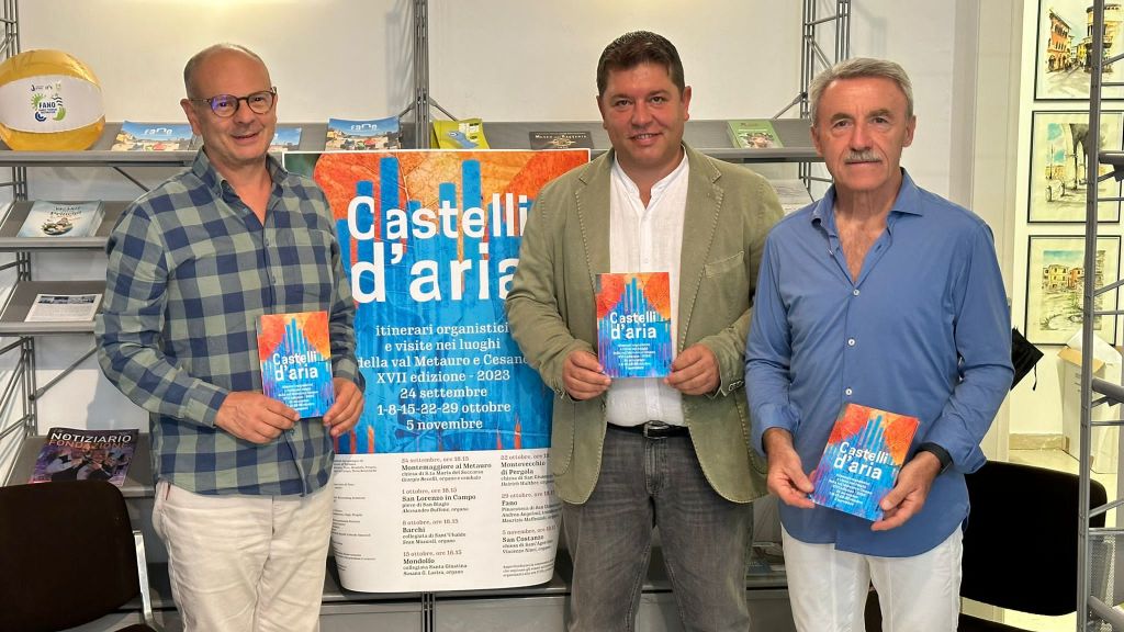 FANO – Mercoledì 20 settembre, presso l’Assessorato al Turismo di Fano, è stata presentata al pubblico la XVII. edizione di “Castelli d’Aria: in itinerari organistici nella val Metauro e Cesano”, Festival organizzato dalla “Associazione Il Laboratorio Armonico”, sotto la direzione artistica del maestro Giovannimaria Perrucci. Lo scopo della manifestazione è quello di valorizzare il patrimonio degli organi storici della nostra provincia. Nell’estate appena conclusa l’attività si è concentrata sulla città di Fano, precisamente nella chiesa francescana di Santa Maria Nuova, con la 62. edizione dei “Concerti estate d’Organo” e, come consuetudine, ai concerti d’agosto segue ora il calendario di ‘Castelli d’aria’, finalizzato alla valorizzazione del patrimonio degli organi storici delle chiese nella valle del fiume Metauro e Cesano (per la precisione le chiese poste nelle seguenti 7 località: Barchi, Fano, Mondolfo, Montemaggiore al Metauro, Montevecchio di Pergola e San Costanzo). La rassegna dunque coprirà le prossime 7 domeniche, per concludersi il 5 novembre, per poi passare il testimone alla seconda edizione della rassegna “Bianchi castelli d’aria”.