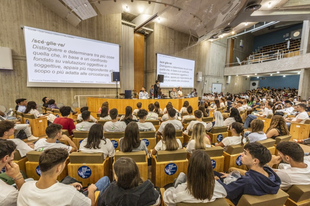 URBINO – «Non vogliamo fare orientamento. L’obiettivo è regalare momenti di ispirazione ai nostri giovani, mettendo al centro storie generose di vita umana e professionale. Che siano da stimolo nella scelta del percorso post diploma: abbiamo un territorio ricco di conoscenza ed eccellenze, c’è un rapporto ottimo tra qualità della vita e possibilità di impiego. Serve fare maggiormente sistema e dare fiducia ai ragazzi. Con queste testimonianze siamo qui per dirgli che ci devono credere. E magari anche loro potranno essere da ispirazione per altri in futuro».Lo ha detto il presidente e fondatore del Club Unesco Urbino e Montefeltro Alberto Bruscoli all’evento «Ispirare per scegliere», organizzato dal Cuum nell’aula magna del Magistero per il futuro delle nuove generazioni. L’iniziativa ha coinvolto oltre 750 studenti e studentesse di quinta superiore. Presenti le scuole di Urbino (liceo scientifico Laurana Baldi, Scuola del libro, Itis Mattei, Istituto Raffaello) oltre agli alunni di Istituto Donati (Fossombrone), Istituto Celli (Cagli-Piobbico) e Omnicomprensivi Montefeltro (Sassocorvaro) e Della Rovere (Urbania). Voci dai testimonial dell’iniziativa: «Giro il mondo per lavoro, ma ovunque vada mi porto dentro la bellezza di Urbino – ha detto l’astrofisica Marica Branchesi -. Essere qui significa davvero tornare a casa. Il mio messaggio? Ai ragazzi dico che devono puntare in alto, perché alla fine i sogni si possono realizzare». Emozione per la testimonianza del ballerino Ivan Cottini, che ha conquistato i presenti con il suo coraggio: «Occasioni come queste sono fondamentali. Per questo andrebbero incentivate iniziative di confronto con i giovani che si trovano a riflettere sulle scelte nei momenti difficili e decisivi della vita», ha evidenziato il coreografo e volto della tv, noto per la straordinaria storia di speranza e forza diffusa dopo avere scoperto di essere affetto da sclerosi multipla. L’evento è stato definito dall’ex magistrato Alfredo Robledo «una rarità nel panorama italiano dell’attenzione sui giovani. Che deve essere intensa e concreta per cogliere il loro momento: è questo il tempo per costruire il futuro e non va sprecato». A stimolare la platea anche il manager e musicista Andrea Guerra. Presenti il rettore dell’Università Carlo Bo Giorgio Calcagnini, la funzionaria dell’Ufficio istruzione della Provincia Patrizia Paoloni eil rappresentante della Bcc Metauro Samuele Conti. L’iniziativa ha visto il patrocinio della Provincia, con il sostegno degli sponsor Imab Group Spa, Pensarecasa.it e Bcc Metauro.