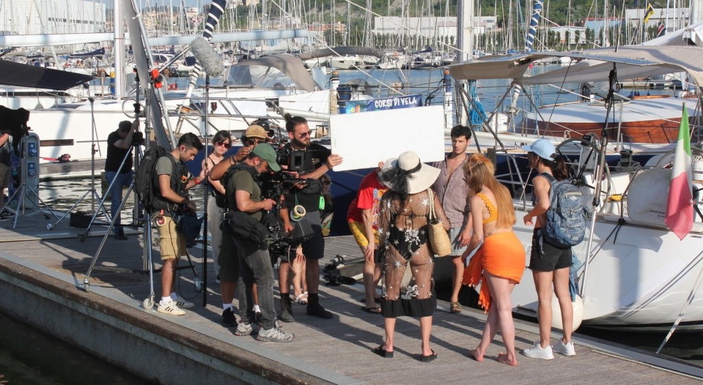In foto: Le riprese del film La spiaggia dei gabbiani