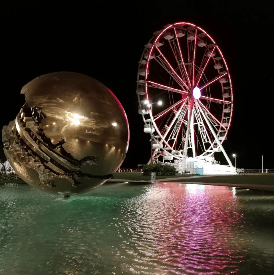 L’opera “Sfera Grande” è una scultura in bronzo di 350 cm di diametro situata a Pesaro, in Piazzale della Libertà. L’imponente capolavoro di Arnaldo Pomodoro è stato inizialmente creato in fiberglass, nel 1966-1967, e poi in bronzo. La Sfera Grande è stata donata alla città di Pesaro dall’artista stesso ed è diventata un punto di riferimento per la comunità. La sua superficie lucida riflette l’ambiente circostante, creando un senso di immersione. Arnaldo Pomodoro è noto per le sue sculture tridimensionali di forme geometriche come sfere, cubi e piramidi, che spesso presentano una superficie liscia all’esterno e un interno frantumato e caotico. Ha realizzato numerose opere monumentali in tutto il mondo e ha insegnato presso università negli Stati Uniti. Ha ricevuto numerosi premi e riconoscimenti per il suo lavoro. Roberto Malini – Comitato “Pesaro città d’arte e cultura”