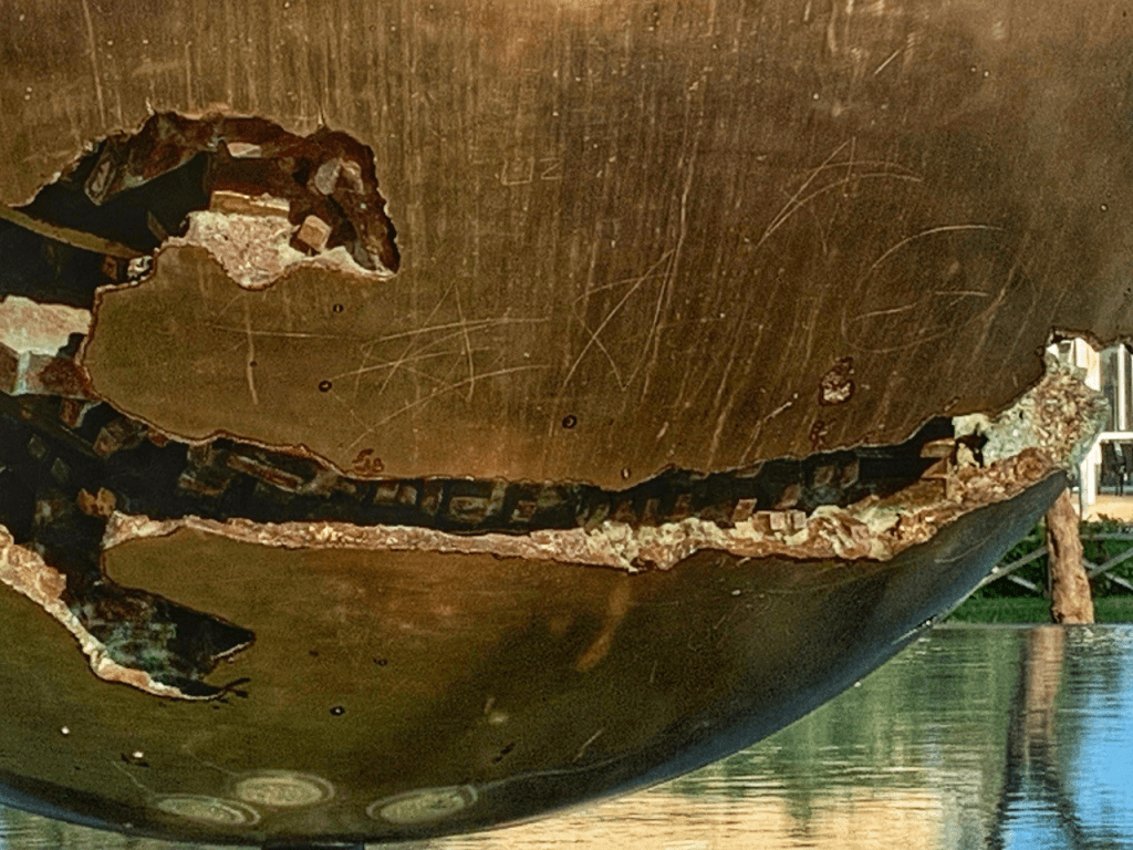 Nelle foto di Fabio Patronelli, una parte degli sfregi che hanno coilpito la Sfera Grande di Arnaldo Pomodoro e una foto risalente al 20 settembre (mentre sono intervistato da Vera TV), in cui si nota come la scultura sia ancora integra; la terza foto è stata caricata su Instagram 48 ore fa e la Sfera si presenta ancota intatta
