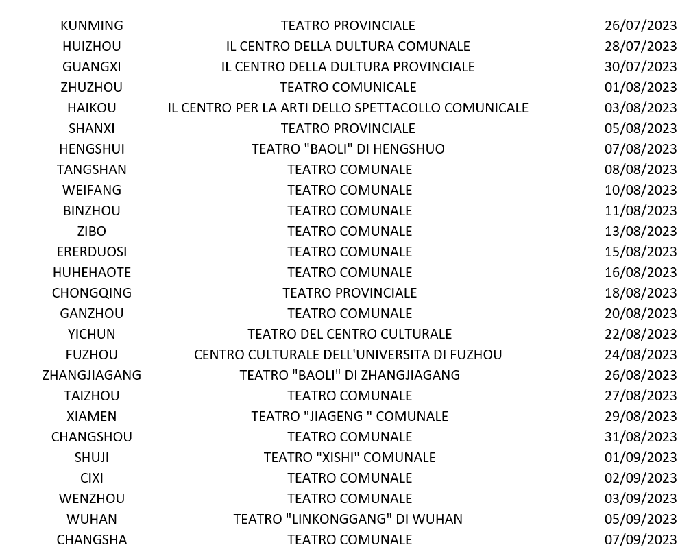 Una tournée lunga 50 giorni (iniziata il 4 luglio e terminata l’11 settembre) e 16mila Km durante la quale i 50 componenti dell’Orchestra Raffaello (composta da 32 musicisti e cantanti di Pesaro e dintorni coadiuvati dall’Associazione Armonie in Villa di Pistoia) hanno toccato 25 teatri di altrettante città portando le note dell’opera simbolo di Gioachino Rossini, “Il Barbere di Siviglia”, e l’arte di Pesaro, Città creativa della Musica UNESCO, su e giù per la Cina.