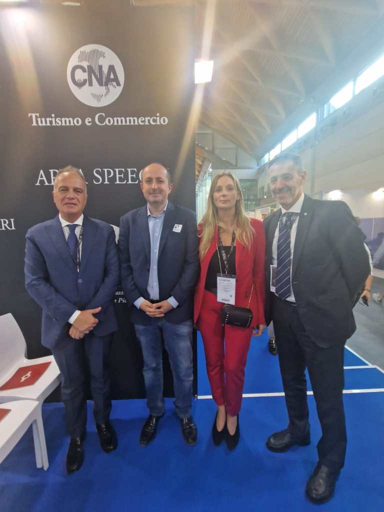 - In foto: da sinistra il responsabile nazionale di CNA Commercio e Turismo Cristiano Tomei, il vicesindaco di Pesaro, Daniele Vimini, la coordinatrice CNA Commercio e turismo Marche, Lucia Pistelli e il presidente nazionale di CNA Commercio e turismo, Marco Misisichia.