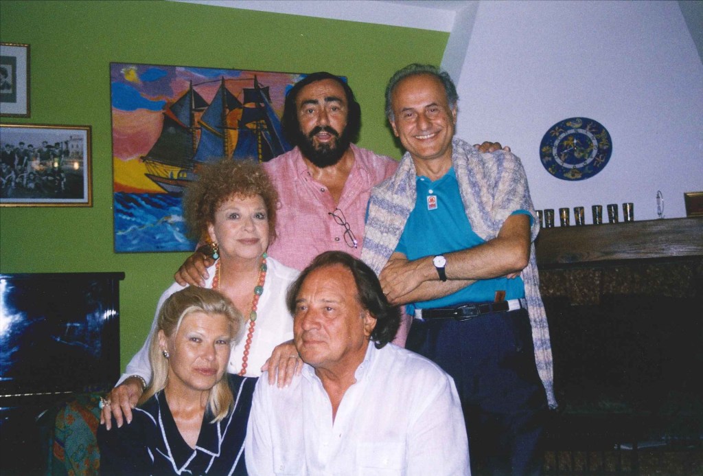 Nella Foto 1: da sinistra: Angela Maria Bocci, Katyna Ranieri, Riz Ortolani, Luciano Pavarotti e Giorgio Girelli (scatto di Nicoletta Mantovani)