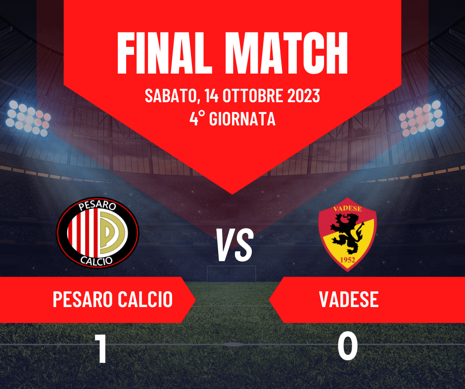 Pesaro : La partita inizia e passa appena un minuto quando Cela viene steso in area ma l’arbitro non se la sente di fischiare e tra le proteste dei padroni di casa lascia correre. Alla mezz’ora Pesaro Calcio vicinissima al gol, Giovanelli serve un assist al bacio a De Gennaro che di testa sfiora il palo con la palla che termina fuori, si va al riposo con il risultato in parità. Nella ripresa non ci sono grandi occasioni degne di note, la partita si accende nei minuti di recupero con la Pesaro Calcio che trova il gol dell’uno a zero in un azione che creerà molte proteste da parte degli ospiti, sugli sviluppi di un calcio di punizione da fuori area, la palla arriva in area di rigore, Valentini si avventa sulla palla ma si scontra con il portiere ospite, subito dopo Boccioletti è il più lesto di tutti andando a colpire di testa a porta vuota portando in vantaggio i suoi. Gli ospiti reclamano per un fischio da parte dell’arbitro che secondo la loro è avvenuto prima del gol per decretare un calcio di rigore a favore della Pesaro Calcio, a fine partita l’arbitro ha spiegato ai giocatori ospiti dichiarando più volte di aver fischiato dopo che la palla ha varcato la linea di porta e non prima.