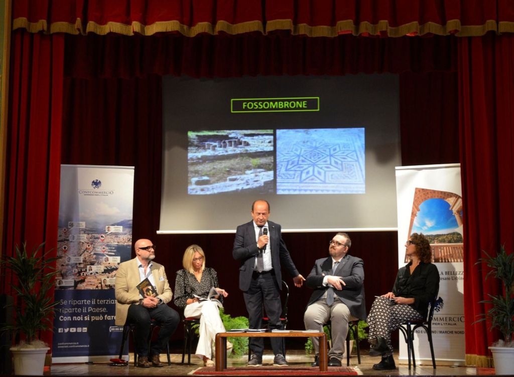Ha quindi preso la parola Varotti: “Da cinque Comuni in sei anni siamo arrivati a 21 che diventeranno 23 nel 2024. Amministrazioni che apprezzano e condividono il nostro modo di lavorare: una promozione quotidiana del territorio utilizzando tutti gli strumenti del marketing turistico, con la partecipazione a fiere e organizzando Press tour. l’Itinerario Archeologico, ad esempio, lo presenteremo il 3 novembre a Paestum; il 9 poi saremo a Colmar. Un’attività che consente di fare conoscere il territorio anche a chi ci vive e anche l’apertura di museo e chiese in molti casi chiusi”. Il direttore è poi passato alle novità dell’Archeologico: “La provincia di Pesaro e Urbino è ricchissima dal punto di vista archeologico e conserva rilevanti testimonianze della storia e della cultura materiale dell’uomo dal Paleolitico al Rinascimento passando per l’epoca romana. L’’Itinerario Archeologico e delle città sotterranee’ non ha la presunzione di rappresentare l’intero ed immenso patrimonio di questa provincia. Si muove all’interno di un percorso, di una rete che alcuni Comuni – insieme alla Confcommercio – hanno deciso di percorrere per valorizzare e promuovere il territorio, le proprie risorse ambientali, culturali, enogastronomiche e turistiche all’insegna dell’Itinerario della Bellezza. Questa terza edizione propone importanti novità: l’avvenuta costituzione della ‘Rete Museale della Via Flaminia’, il rinnovato Museo Oliveriano di Pesaro, il Museo Archeologico dui Cantiano ed il Museo del territorio di Suasa di San Lorenzo in Campo. Il tutto all’insegna dell’evento più importante che caratterizzerà il nostro territorio nelle prossime settimane: “Pesaro 2024 Capitale Italiana della cultura”.