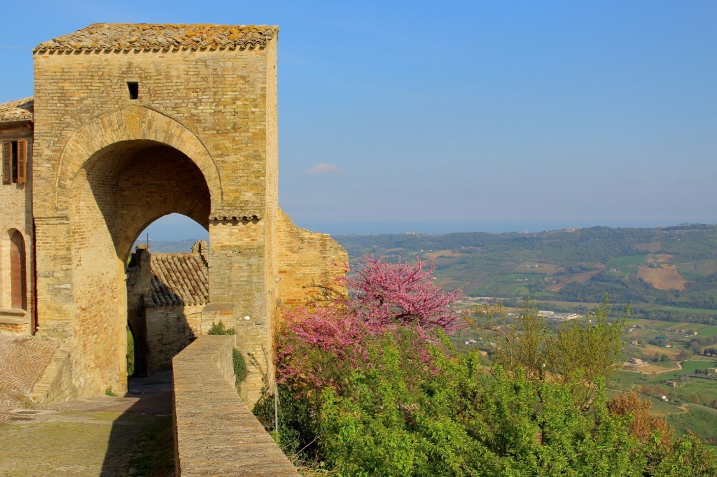 Nell’angolo Sud-Est della cinta muraria del Castello di Monterubbiano(FM) è ubicata Porta San Basso, un tempo chiamata Porta Vecchia: il nome odierno è dovuto a San Basso da Nizza, protettore di Cupra Marittima. Ho trovato una singolare similitudine architettonica con Novilara (PU): del Castello che aveva le fattezze del palazzo-fortezza posto sulla sommità del colle, restano solo le mura e la Porta d’accesso denominata Sant’Arcangelo.