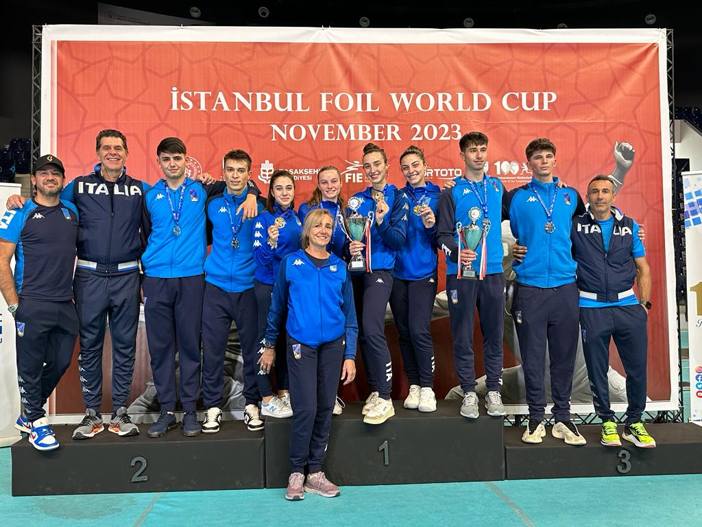 | Si è da poco conclusa a Istanbul la prima tappa di Coppa del Mondo Under 20 di Fioretto, che ha aperto ufficialmente la stagione internazionale 2023/2023 della categoria Giovani. Tra gli atleti del Club Scherma Jesi in pedana sabato 4 con la nazionale italiana, da segnalare il risultato di tutto rispetto di Federico Greganti, giunto 27° nella classifica finale, dopo essere stato battuto ai trentaduesimi dall’egiziano Luois Pradel per 15-6. Nella prova di Fioretto femminile, da segnalare la 78° posizione di Sofia Giordani, fermata dalla statunitense Hailey Eyer per 15-7.Notevole anche la prestazione di oggi nella gara di Fioretto a squadre maschile, in cui la rappresentativa azzurrina formata dallo jesino Federico Greganti insieme a Matteo Iacomini, Mattia de Cristoforo e Mattia Raimondi ha conquistato una straordinaria medaglia d’Argento dopo una combattuta finale con gli USA, conclusa con il punteggio di 45-30 a favore degli americani. “I nostri atleti continuano a darci grandissime soddisfazioni anche a livello mondiale” – sono le parole del presidente del Club Scherma Jesi Maurizio Dellabella – “Sia a livello individuale che nelle gare a squadre abbiamo dato un forte contributo ai risultati della Nazionale italiana e questo ci rende particolarmente fieri e orgogliosi. Come sempre il plauso e il ringraziamento, oltre che agli atleti, va ai tecnici, a tutto lo staff e quanti continuano a credere in noi e a sostenerci, primo tra tutti il nostro main sponsor Intesa Sanpaolo con il nuovo brand isybank” |