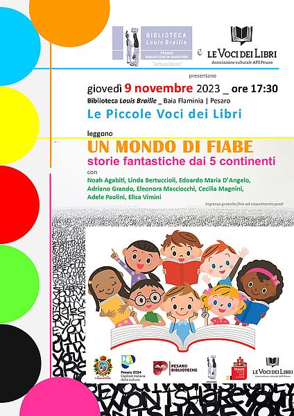 La Biblioteca Louis Braille di Baia Flaminia e l’Associazione Culturale Le Voci dei Libri vi invitano, il prossimo giovedì 9 novembre alle ore 17.30, all’ascolto della lettura intitolata Un mondo di fiabe, dedicata ai bambini…di tutte le età!