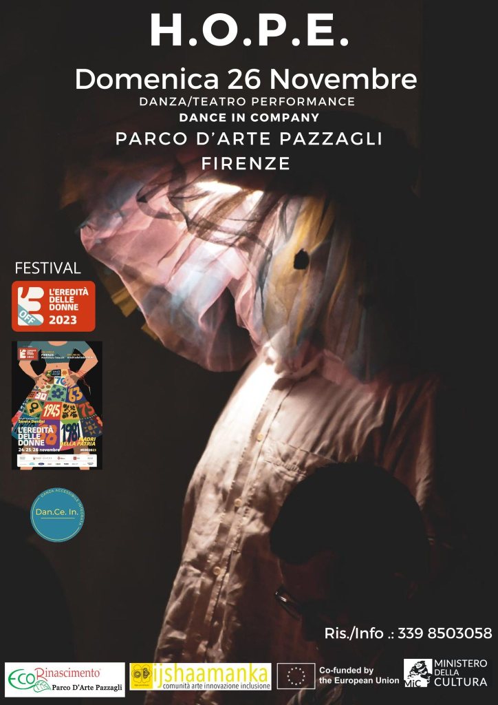 Lo spettacolo della compagnia Dance-In (Danza Accessibile Integrata) H.O.P.E. (Homines omnium planetarum eripere) prodotto dall’associazione è stato selezionato dal festival “Eredità delle Donne” diretto da Serena Dandini. Andrà in scena il 26 Novembre alle 19 a Firenze, presso il Parco d’arte Pazzagli. Partner fondatori del Festival Fondazione CR Firenze e Gucci; la manifestazione si avvale della co-promozione del Comune di Firenze.