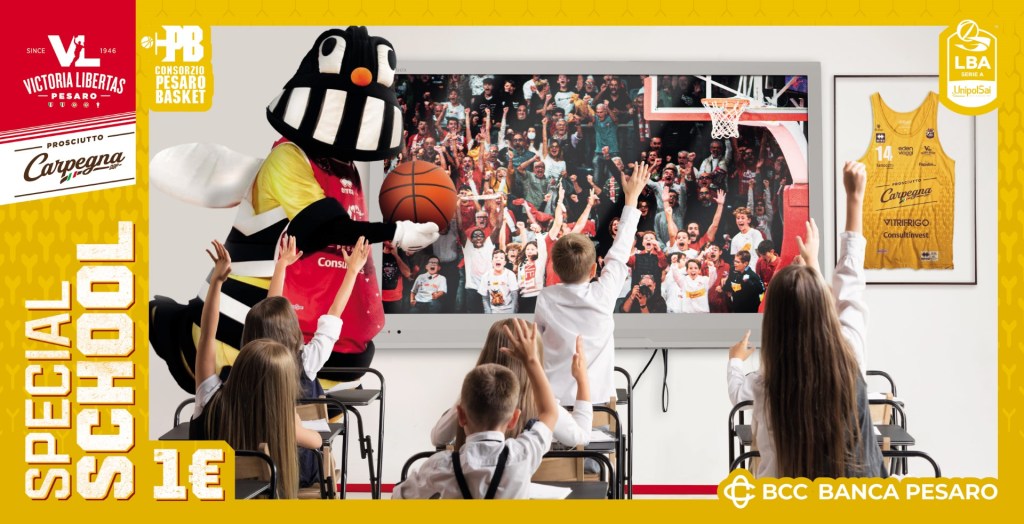 Anche quest’anno – grazie alla collaborazione con il Provveditorato agli Studi della provincia di Pesaro e Urbino nella persona della Dott.ssa Alessandra Belloni alla quale va il ringraziamento della VL – la Società ha proposto il progetto ‘Special School’ coordinato da Walter Magnifico che ha riguardato non solo Pesaro ma – novità del 2023/2024 – anche la provincia. Il progetto è rivolto a tutti gli istituti scolastici di ogni ordine e grado e permette a tutti gli studenti, docenti e personale ATA di assistere a due partite casalinghe della Carpegna Prosciutto Basket Pesaro a prezzi molto vantaggiosi.