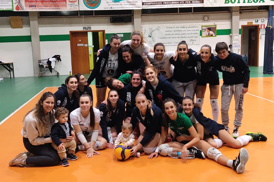Torna finalmente alla vittoria nella settima giornata del Campionato di serie C, davanti al folto e caloroso pubblico della “Francesca Ricci”, la formazione della Line Office Real Bottega, che finalmente in 3 set batte le più quotate ospiti della Bcc Pergola & Corinaldo, una formazione composta da un mix di ragazze più giovani e da altre più esperte che, sicuramente, possono ancora recitare un ruolo importante in questa categoria. Ma la partita ci regala una prestazione maxi, non solo sotto il profilo tecnico-tattico ma, soprattutto, dal punto di vista di carattere delle nostre atlete che, in passato, anche quando erano avanti di due set, avevano poi perso al tie-break, crollando alla distanza, regalando di conseguenza punti preziosi per la classifica. La gara di Sabato 18, invece, ha registrato un netto cambio di passo, con le botteghine che partivano con un sestetto base che le portava a vincere il primo set, poi cambiato dopo qualche errore, che avevano rimesso in gioco la formazione ospite nel secondo set, e che ha regalato i suoi frutti alla coach Laura Renda. Commovente sul 2-0, anche la risposta del pubblico di casa, che ha accompagnato con cori e tanto calore le ragazze, passo dopo passo, alla vittoria del terzo e ultimo set, diventato dall’inizio di stagione un tabù da sfatare davvero importante. Le ragazze hanno risposto bene, appoggiandosi sulla diagonale Torcoletti-Calzolari ma, soprattutto, servendo e sfruttando al massimo la serata di grazia della ricezione e dei devastanti attacchi della Chiarello, che ha trascinato davvero la squadra a una meritatissima vittoria.