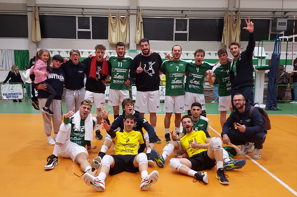 Nella settima di andata del Campionato di serie C, i ragazzi della Bertuccioli Real Bottega, tornano alla vittoria dopo la batosta di San Benedetto (unica sconfitta stagione fra Coppa Marche e Campionato), e ritrovano la via della vittoria in casa davanti ad un folto e caloroso pubblico per 3 a 1. La contesa ha visto la squadra di coach Marco Romani senza troppi patemi portarsi subito avanti nel punteggio nei primi due set, dove i ragazzi del Bottega hanno messo in luce la loro pallavolo e hanno vinto quasi tutti gli scambi che li vedevano opposti agli ospiti di Grottazolina. Nel terzo parziale, purtroppo, l’attenzione calava vistosamente, le scorie della partita di sabato scorso si facevano sentire e la squadra si deconcentrava tantissimo, tanto da sbandare fuori dalla partita, un dato i tantissimi errori diretti arrivati dalla battuta. Così piano piano la Yuasa Santoni riusciva nell’impresa di aggiudicarsi il set e riaprire una partita già chiusa per i valori visti in campo fino a quel momento. Fra il terzo e il quarto set, sia coach Marco Romani che il capitano Nicola Romani scaldavano gli animi dei botteghini, che al ritorno sul terreno di gioco, nel giro di poco macinavano il vantaggio giusto che gli permetteva la gestione senza troppi problemi del set che poi ha portato a mettere l’ennesimo sigillo vincente anche a questo match.