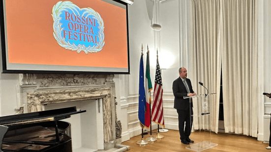 La 45esima edizione del Rossini Opera Festival, in programma a Pesaro dal 7 al 23 agosto 2024, è stata presentata nella sede del Consolato d’Italia a New York. Sono intervenuti il Console generale Fabrizio Di Michele, il Sindaco di Pesaro Matteo Ricci, il vice Sindaco di Pesaro Daniele Vimini (foto), il Sovrintendente Ernesto Palacio e il Direttore artistico Juan Diego Flórez. Il programma, mai così ampio, coprirà un periodo di ben 17 giorni, 4 in più del consueto, onde offrire maggiori possibilità di assistere agli spettacoli al pubblico che da tutto il mondo sarà a Pesaro, anche in coincidenza con gli eventi di Pesaro capitale italiana della cultura 2024.