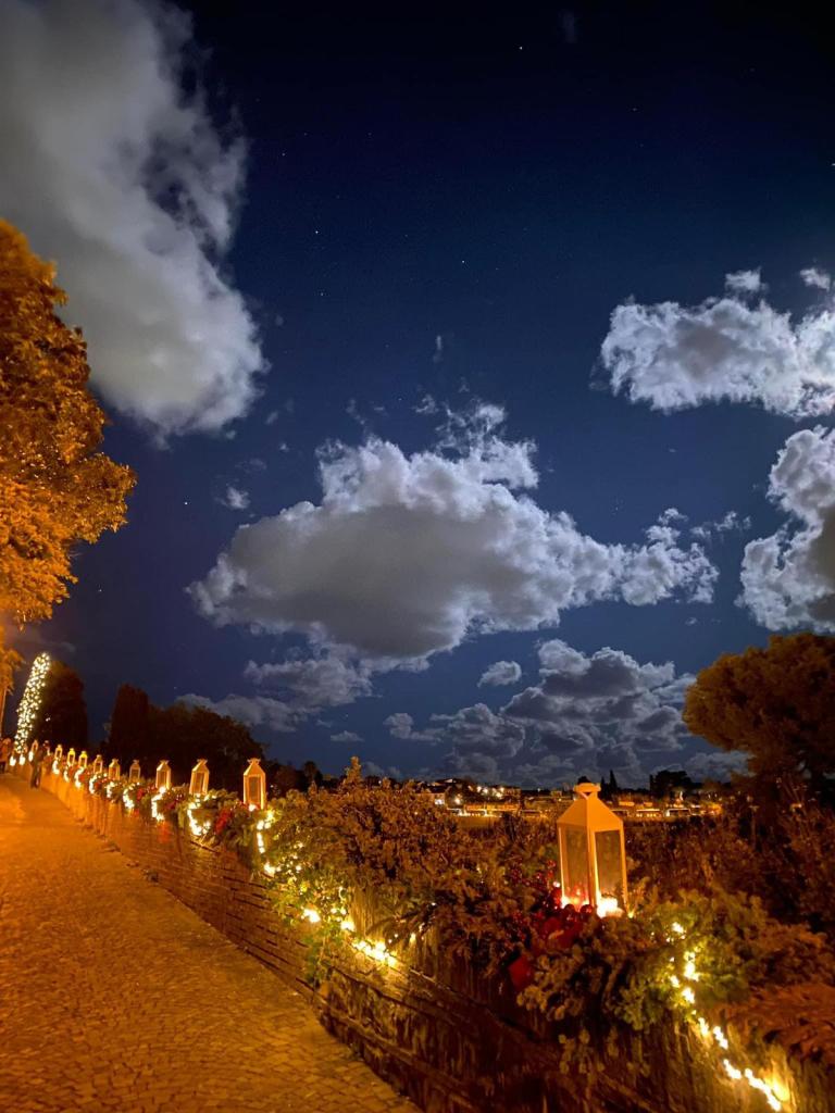 - In foto: Le lanterne del borgo prima e dopo il vento