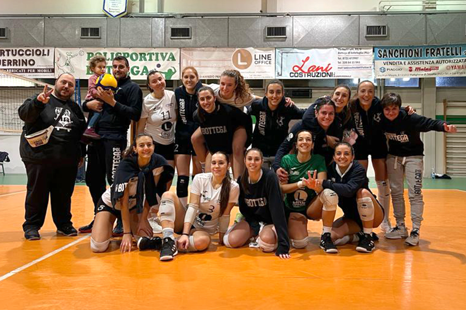 Si è aperto nel migliore dei modi il girone di ritorno per la formazione della ragazze della Line Office Real Bottega che Sabato 9 Dicembre 2023 nella gara disputata presso la palestra comunale “Francesca Ricci”, davanti ad un folto e caldo pubblico, sono tornate finalmente ad una vittoria piena conquistando 3 preziosi punti in classifica ma, soprattutto, giocando una grande gara dove si è vista una bella pallavolo e, finalmente, tanto carattere nei momenti di chiudere i set, una testimonianza nel primo parziale, dove le Botteghine di Laura “Lalla” Renda, hanno vinto un lungo ed estenuante braccio di ferro ai vantaggi con le anconetane, grazie al grande lavoro in difesa e agli attacchi precisi di Calzolari e Chiarello ben innescate da Torcoletti. Non da meno è stato il secondo parziale, dove le ragazze hanno combattuto punto su punto contro le ospiti, ma anche questa volta la freccia ha preso la direzione delle locali di Bottega, con una gran Saponara a muro a chiudere e a dire no in diverse occasioni al tentativo di Ciù Ciù di impattare la partita. Nel terzo set, un crollo più fisico che emotivo delle nostre ragazze ha permesso a Offida, come nella gara di andata poi finita con la vittoria al tie-break delle ospiti, di poter riaprire la partita e fare serpeggiare fra il pubblico la paura che ancora una volta le biancoverdi potessero lasciarsi sfuggire dalle mani la partita, come spesso era accaduto nel girone di andata e perdere ancora una volta punti per strada. Ma nel quarto set, Bottega sale decisamente in cattedra, le ragazze sul campo sbagliano pochissimo, mentre le ospiti alla lunga accusano la stanchezza e continuano ad essere fallose nel fondamentale della battuta e poco incisive in attacco, tanto che le atlete di coach Laura “Lalla” Renda possono abbracciarsi a fine match, consapevoli di aver giocato una grande partita e di aver meritato la vittoria questa volta a punteggio pieno.