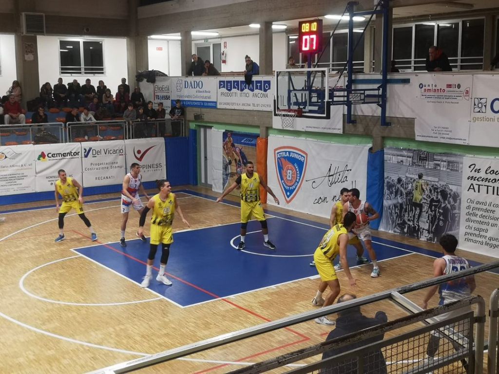 L’Italservice Loreto c’è. A Porto Recanati, Broglia e compagni prevalgono sull’Attila Sì con Te (72-64) e aprono il girone di ritorno con una importantissima vittoria esterna, bissando il sudatissimo successo dell’andata (conquistato dopo ben tre tempi supplementari) e dando continuità alla convincente affermazione nel derby pesarese contro il Pisaurum 2000. Una prova di squadra, costruita innanzitutto in difesa e a rimbalzo.