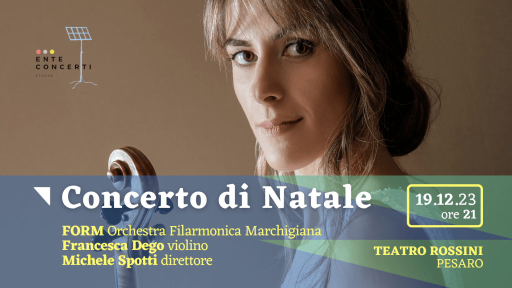 Martedì 19 dicembre (ore 21) al Teatro Rossini di Pesaro in scena il Concerto di Natale organizzato dall’Ente Concerti di Pesaro. Protagonisti saranno Francesca Dego, una delle violiniste più richieste sulla scena musicale internazionale, al fianco della FORM Orchestra Filarmonica Marchigiana con la guida di Gaetano D’Espinosa, giovane e talentuoso direttore che salirà generosamente sul palco in sostituzione dell’indisposto Michele Spotti.
