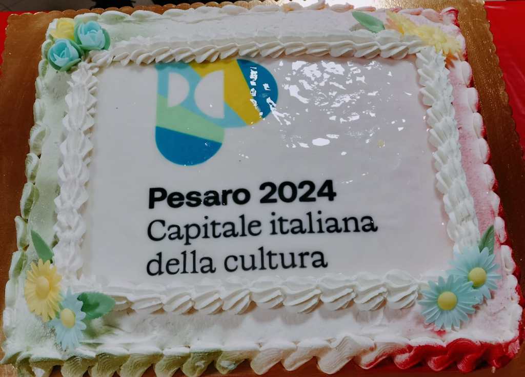 Il clima natalizio si è concluso con la condivisione della torta dedicata a “Pesaro 2024 – Capitale italiana della cultura” che ha trovato unanimità nei sorrisi e negli abbracci augurali.