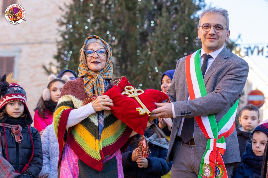 Oggi alle 15 il sindaco Marco Ciccolini ha consegnato le chiavi della città alla Befana che ora, fino all’Epifania, guiderà Urbania: “Ai bambini dico posate i cellulari e riprendete a giocare nei cortili. In questi giorni in cui governerò Urbania si potrà giocare e ballare per strada, perché i giochi fatti dal vivo, tutti insieme, rimarranno sempre i migliori”