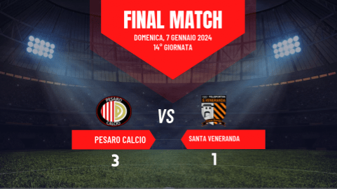 Pesaro : Derby tutto pesarese quello di scena al “Supplementare” nella prima partita del 2024, i padroni di casa della Pesaro Calcio vogliono dare continuità alla serie positiva di risultati e prestazioni con cui hanno chiuso l’anno appena passato, di fronte si troveranno un S. Veneranda pronto a dare battaglia. Inizia la partita e dopo appena dieci minuti è la Pesaro Calcio ad essere pericolosa con una conclusione di De Angelis ma Bulzinetti è bravo a mandare in angolo, alla mezz’ora circa padroni di casa che continuano ad attaccare e sugli sviluppi di un calcio d’angolo Giovanelli è il più abile di tutti riuscendo a trovare la zampata vincente portando in vantaggio i suoi, passa appena un minuto e gli ospiti guadagnano una punizione dal limite dell’area, Ordonselli va alla battutta e con un gran tiro trafigge Ottavi, si va al riposo con il risultato in paritá. Inizia la ripresa e De Gennaro spara alto da ottima posizione, qualche minuto più tardi ancora De Gennaro che va al tiro ma Bulzinetti è in giornata super salva i suoi prima sul tiro e poi sulla ribattuta. Pesaro Calcio che continua ad attaccare e poco prima della mezz’ora trova il gol del vantaggio, Casoli, subentrato a De Angelis, serve De Gennaro che questa volta non sbaglia. Padroni di casa in totale controllo della gara e nei minuti finali trovano il gol del tre a uno ancora con Giovanelli servito da Simoncelli entrato da qualche minuto. Dopo quattro minuti di recupero l’arbitro fischia la fine delle ostilità, al Supplementare il derby è della Pesaro Calcio che continua il suo momento positivo conquistando tre punti importantissimi.