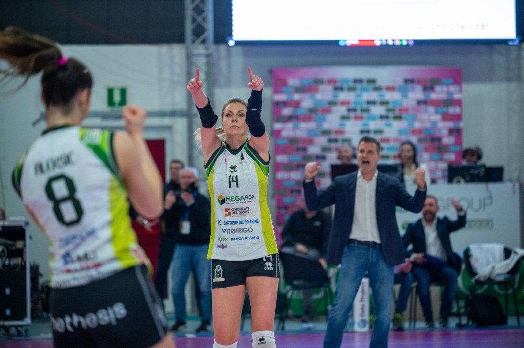 La Megabox Ondulati del Savio si aggiudica la terza vittoria casalinga consecutiva, superando in quattro set una Bergamo tenacissima, che nella parte centrale del match ha dimostrato a lungo di potersela giocare alla pari. A metà del terzo set la Megabox ha saputo tirarsi fuori da una partita che era diventata complicatissima, con le ospiti capaci di difendere a lungo qualunque pallone. Decisive Mingardi (26 punti col 4/% su 53 palloni) e Aleksic (16 punti e 9 muri) ottima la prova di squadra, mentre Bergamo esce comunque a testa alta (Nervini 11, 10 per Lorrayna e Daviskiba), dimostrando di essere squadra più che viva. Bellissimo il colpo d’occhio di pubblico, allietato dalle musiche di Clarissa Vichi. Prima della partita dìi due sindaci di Bergamo e Pesaro hanno celebrato il passaggio di consegne tra le due capitali italiane della cultura 2023 (Bergamo, assieme a Brescia) e 2024 (Pesaro).