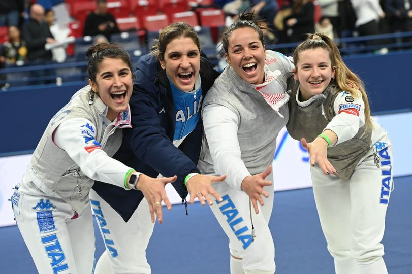 Il team composto da Alice Volpi, Francesca Palumbo, Martina Favaretto e Arianna Errigo, ha poi conquistato uno splendido Oro nel Fioretto Femminile a squadre battendo la Francia in finale.