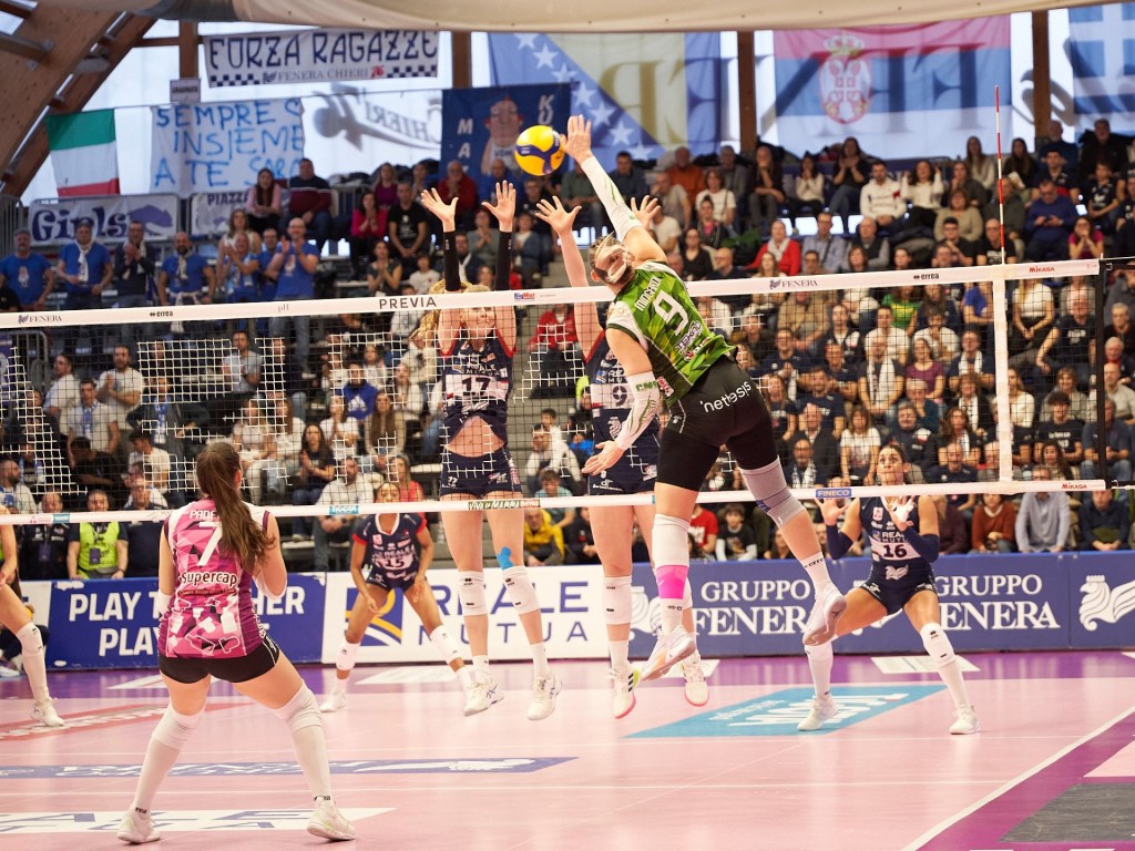 REALE MUTUA FENERA CHIERI: Kingdon 6, Weitzel 8, Grobelna 16, Omoruyi 14, Zakchaiou 10, Malinov 10; Spirito (L), Morello 1, Rolando, Gray, Anthouli 2. Non entrate: Buffone (L), Skinner, Kone. All. Bregoli.