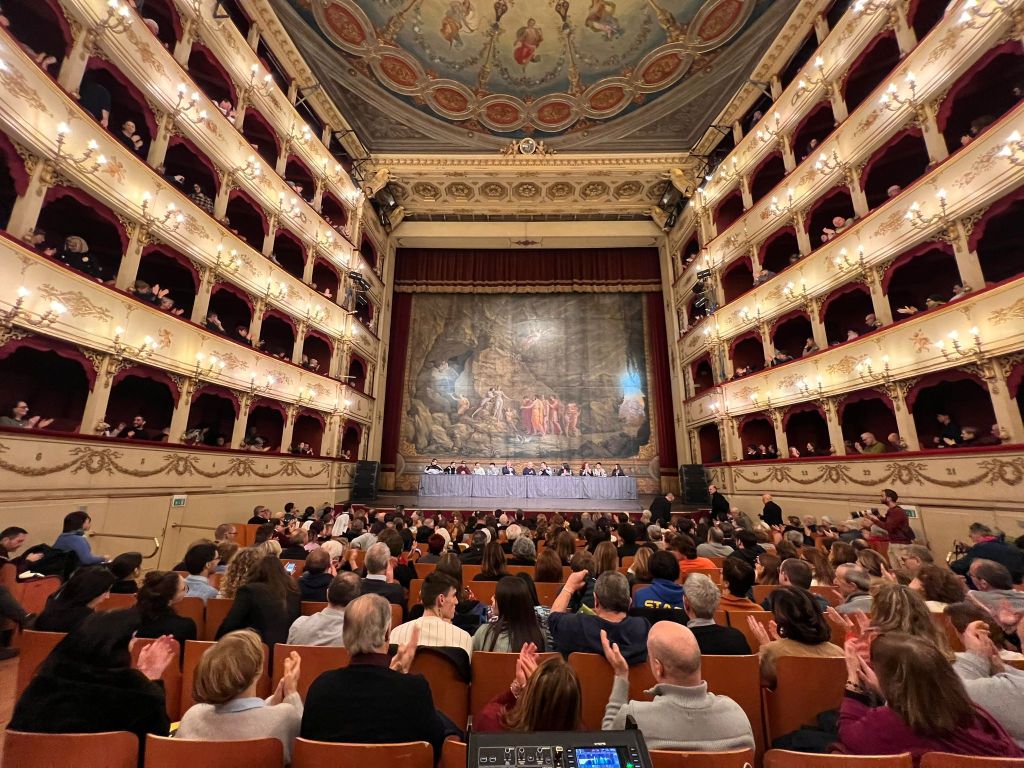 Una bella mattinata di festa per la città, che oggi a Teatro Rossini ha salutato i “dimissionari” de L’Imprevisto. I ragazzi e le ragazze che hanno concluso il loro percorso all’interno della comunità guidata da Silvio Cattarina. «La bellezza sarà la parola che ci guiderà in questo cammino, che non è solo quella del luogo che ci ospita oggi, ma è quella della cura – ha detto il sindaco di Pesaro Matteo Ricci -. Ogni ragazzo ha sottolineato la capacità degli operatori che hanno incontrato nel loro percorso: uomini e donne, a iniziare da Silvio Cattarina, che giorno dopo giorno si prendono cura degli altri, colgono la scintilla che c’è dentro ognuno di questi giovani, la custodiscono e gradualmente riescono a farla ardere. Ci sono tante cose delle quali io vado orgoglioso della città, ma la prima è la nostra grande cultura della cura, della solidarietà, il grande cuore, di decine e decine di operatori sociali, sanitari che si occupano dei più deboli. Grazie».