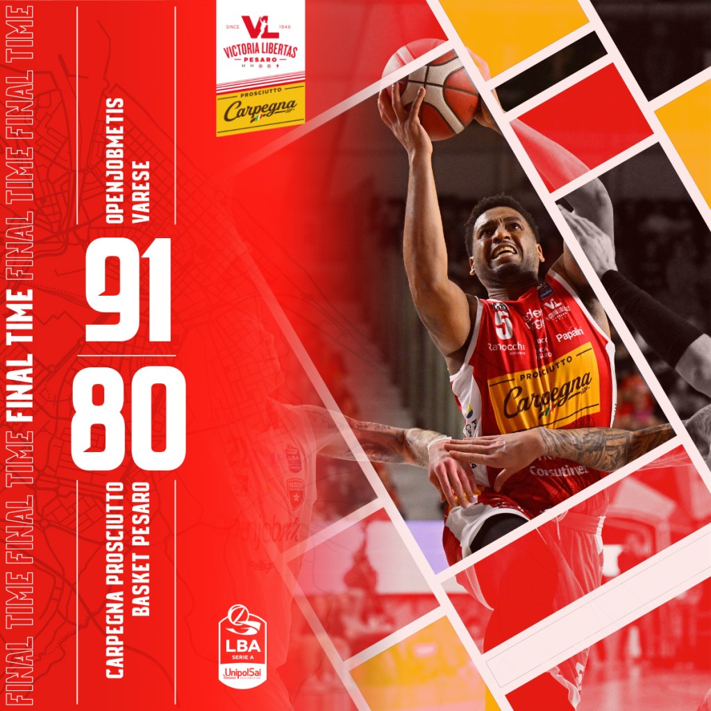 La Carpegna Prosciutto Basket Pesaro nel match della 20^ giornata di Serie A alla Itelyum Arena di Varese contro la Openjobmetis non trova il successo: ad avere la meglio sono i padroni di casa per 91-80.