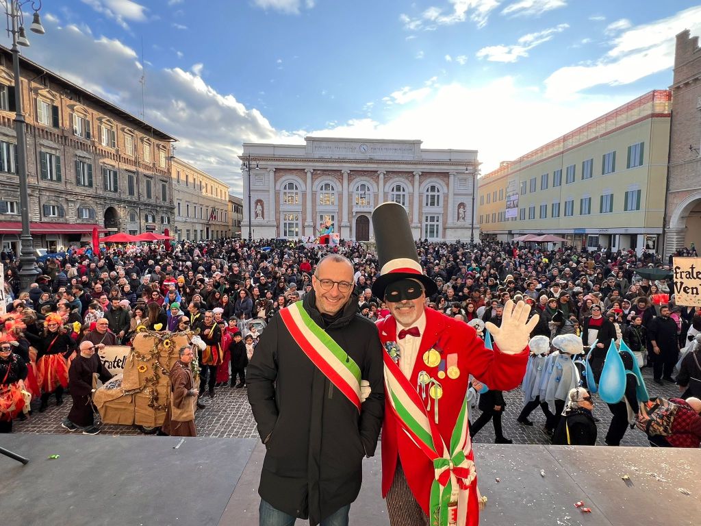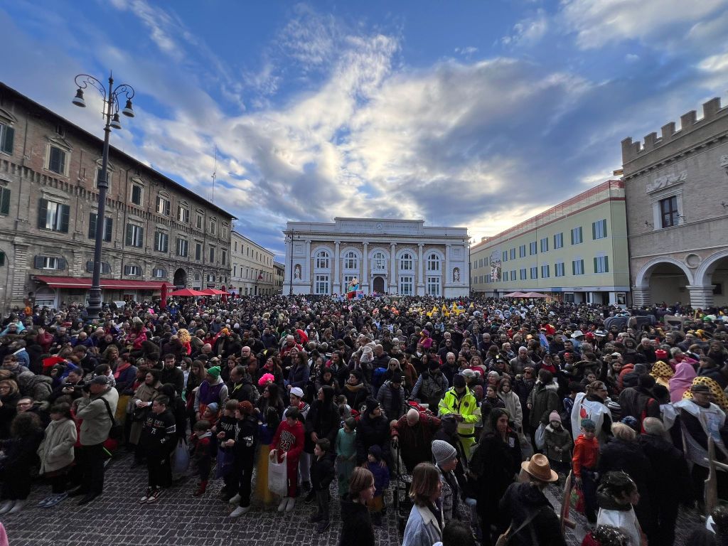 Dall’alusfera il colpo d’occhio è bellissimo. La fotografia della 67^ edizione del Carnevale dei ragazzi è quella di «una piazza del Popolo gremita e colorata, gioiosa, in festa». E non poteva essere altrimenti, perché, come ha ricordato il sindaco Matteo Ricci: «nell’anno speciale di Pesaro 2024 il Carnevale doveva essere speciale». Oggi pomeriggio migliaia di persone hanno preso parte alla sfilata dei carri e delle maschere che ha trasformato le vie del centro storico in un fiume di musica e colori.