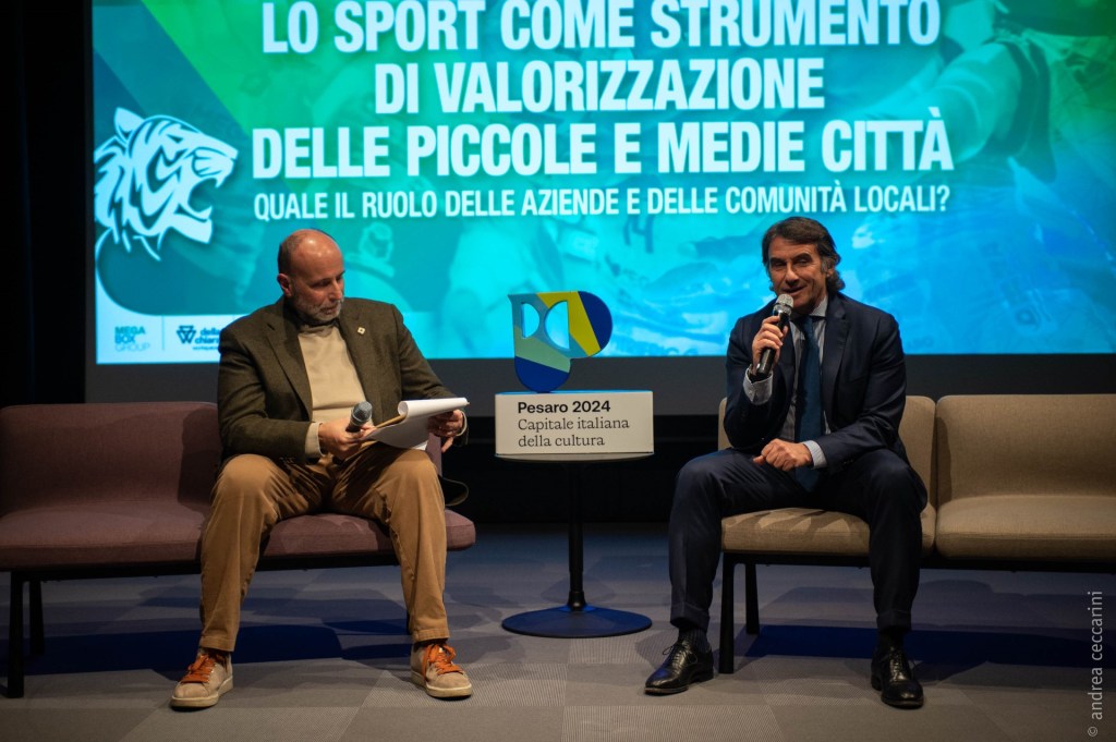Tra gli argomenti affrontati, il ruolo dello sport come strumento di inclusione, di creazione di comunità e di legami con il territorio. Le testimonianze di Mirko Marcolini e di Giovanni Carnevali hanno ribadito i valori dell’innovazione, della responsabilità sociale delle aziende e del dialogo attraverso capillari reti di relazioni con il tessuto sociale, con particolare riferimento a città medio-piccole come Sassuolo e Pesaro.