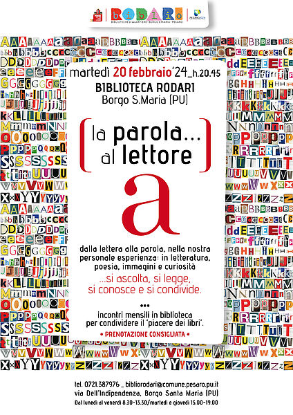 Martedì 20 febbraio alle 20.45 alla Biblioteca Rodari di Borgo Santa Maria, prende il via il ciclo di appuntamenti ‘La parola al lettore’, incontri mensili per condividere il piacere dei libri e della lettura e in cui la parola viene data a chi legge.