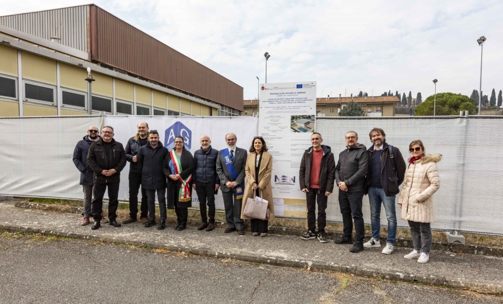 PERGOLA – La Provincia ha consegnato il cantiere per i lavori nell’impianto sportivo ‘Caprini-Minucci’, che prevedono l’ampliamento della palestra del liceo scientifico Torelli nella sede succursale di Pergola. L’investimento complessivo ammonta aun milione e 200mila euro, con fondi Pnrr intercettati dall’amministrazione provinciale. Il progetto, che porterà alla bonifica dell’amianto, prevede la demolizione e la ricostruzione del nuovo volume. I lavori non interferiranno con le attività della piscina adiacente. Sulla copertura della struttura sarà installato un impianto fotovoltaico in grado di rendere autonoma la palestra sul piano energetico. Nel pacchetto anche sistemi di illuminazione di sicurezza e ventilazione artificiale. La conclusione dell’intervento è prevista per la fine dell’anno. «Un altro passo avanti per scuole sicure e belle nel territorio – ha commentato nell’area del cantiere il presidente della Provincia Giuseppe Paolini –. Si tratta di un cantiere significativo perché assicurerà all’istituto una palestra pienamente funzionale. Parliamo di una struttura antisismica e a classificazione ‘nzeb’, con fabbisogno energetico coperto da fonti rinnovabili, rilevante anche per le attività di aggregazione sostenute dal Comune con le associazioni sportive del territorio». «Grazie alla Provincia per l’investimento in una palestra che fornisce un servizio prezioso – ha sottolineato la sindaca Simona Guidarelli –. Contiamo di proseguire in futuro anche con la riqualificazione della restante parte dell’impianto». Soddisfatto il dirigente scolastico Raffaele Balzano: «Per la nostra scuola è un intervento fondamentale che risolve molte criticità. Nella fase dei lavori c’è la disponibilità del Comune a utilizzare temporaneamente gli spazi dell’istituto Binotti e di altre strutture». Presenti il dirigente provinciale Maurizio Bartoli, il responsabile unico del progetto Maurizio Pierantoni e i rappresentanti della ditta esecutrice (New Costruzioni Generali srl).