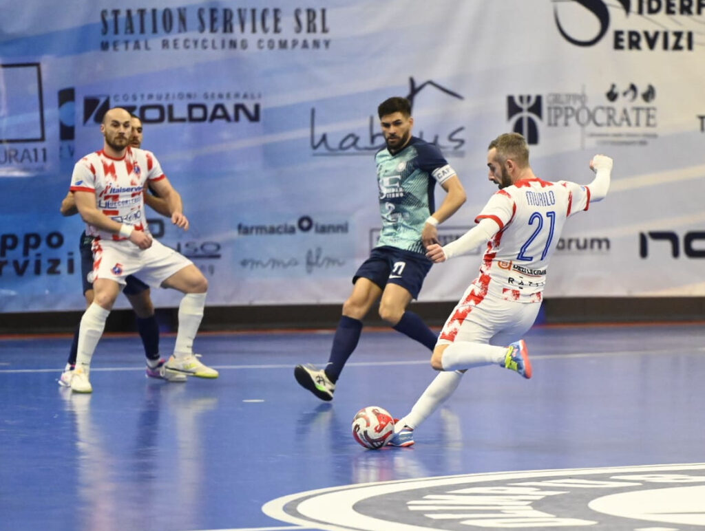 LA CRONACA – Il primo tempo dell’Italservice è da manuale del futsal. Tonidandel e compagni sono perfetti. Difendono in maniera perfetta. Ripartono in maniera perfetta. Colpiscono nei primi minuti, con Schiochet e Vavà rispettivamente dopo 2 minuti e dopo 8. Poi difendono come si deve, lottando con le unghie e con i denti quando c’è da tenere botta. Hanno solo una “colpa”: sprecare troppe occasioni e non chiudere la prima frazione avanti con almeno tre reti di gap, come avrebbero meritato.
