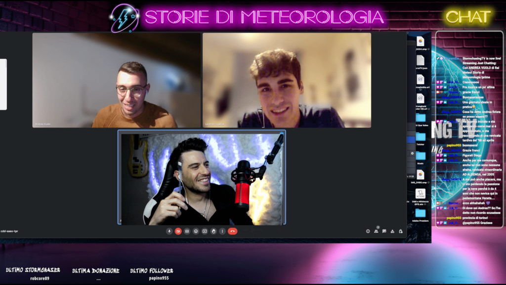Tanti i divulgatori scientifici, meteorologici e appassionati che hanno animato queste dirette nel corso di quest’anno, come ammette lo stesso Gennari: “Durante questo primo anno di vita del canale, abbiamo lavorato sodo per portare in ogni trasmissione contenuti ed ospiti sempre più rilevanti. Dopo qualche diretta in solitudine, ho conosciuto Nicola Subissati, laureando in biotecnologie, ed insieme abbiamo cominciato con il produrre aggiornamenti prima e durante le due alluvioni di maggio, in tempo reale, assieme ad Emilia Romagna Meteo, dove siamo stati seguiti da migliaia di persone. Giornate impossibili ma è stato fatto davvero un gran lavoro”.