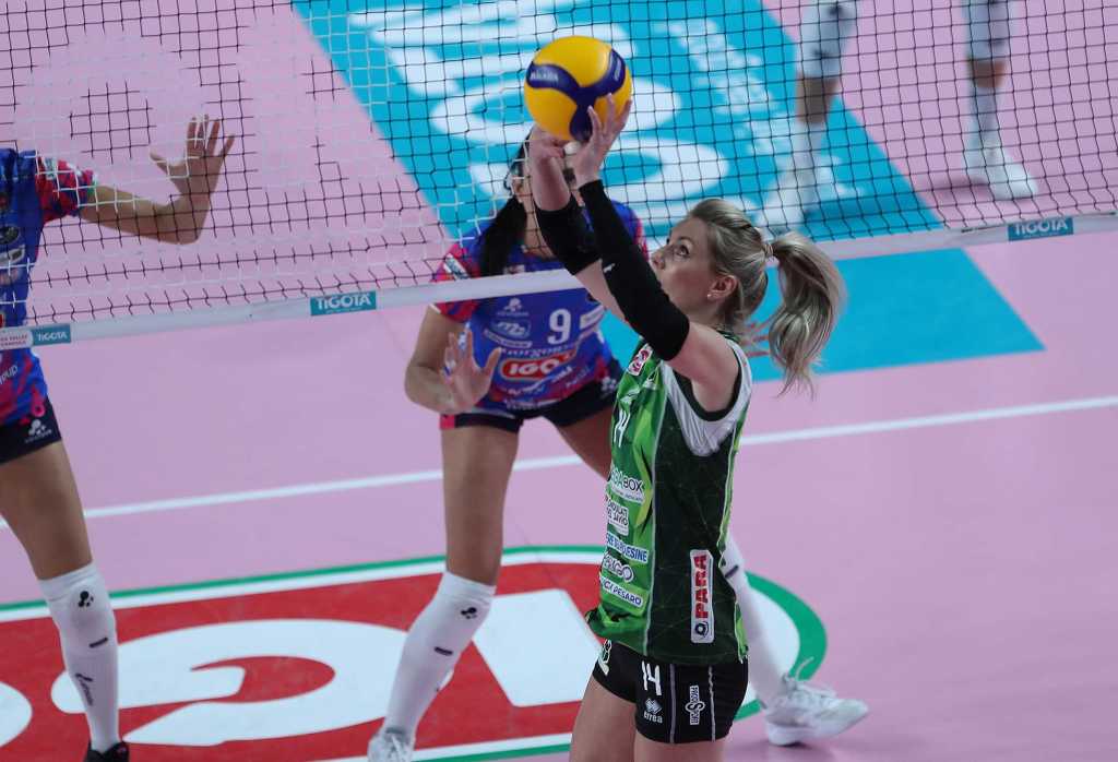 La Megabox Ondulati del Savio gioca alla pari un set e mezzo con la Igor Gorgonzola Novara, squadra tra le più attrezzate del campionato, ad un passo dalla vittoria nella Challenge Cup (martedì la finale di ritorno a Nantes, alle piemontesi basterà vincere due set per portare a casa il trofeo) e significativamente rafforzata dall’arrivo della schiacciatrice Russa Marina Markova, all’esordio in campionato contro le tigri. Dopo essersi aggiudicate il primo set, condotto anche di dieci lunghezze e poi vinto punto a punto rintuzzando la rimonta delle padrone di casa, le tigri si sono fatte via via superare dalla maggiore classe e dall’atletismo preponderante delle avversarie, dominanti a muro (16-3 i muri punto).